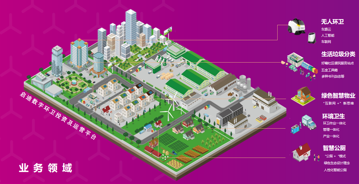啟迪數字環衛(合肥)集團有限公司是啟迪環境數字環衛板塊的平臺公司,以新興技術賦能傳統環衛產業,為城市環境提供智能化、平臺化和一體化解決方案的現代服務企業。致力于打造“數字環衛創新示范新模式”,充分發揮啟迪數字環衛在新興技術與傳統環衛產業融合的優勢,將A(人工智能)、B(區塊鏈)、C(云計算)、D(大數據)、E(邊緣計算)、I(物聯網)等前沿信息技術,與環衛、垃圾分類、再生資源回收、供應鏈等業務應用平臺進行融合,通過無人智能環衛裝備、數字環衛云平臺等,構建數字化、智能化、無廢化城市環衛解決方案,借助國家對“智慧城市”、“無廢城市”大力推廣的難得發展契機,引領帶動環衛產業創新發展。